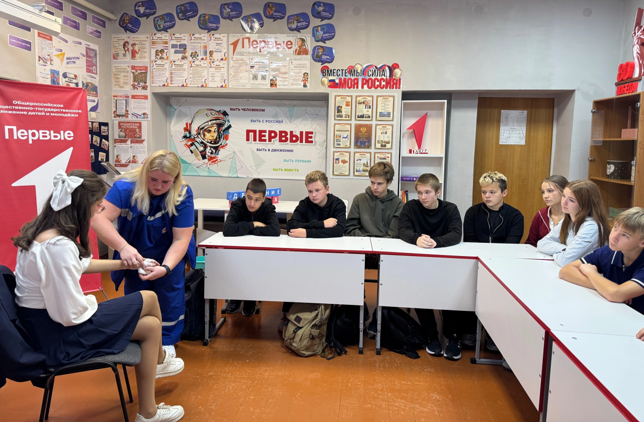 Для активистов Движения Первых в МБОУ "Хотетовская ООШ" прошел важный и нужный мастер-класс, на котором медсестра БУЗ ОО "Станция скорой медицинской помощи", выпускница нашей школы, Горячева Ирина Валерьевна познакомила участников с основами первой помощи. Ирина Валерьевна рассказала о своем профессиональном пути от школьных лет до работы в экстренной медицине и поделилась важными практическими знаниями, полезными для каждого человека.