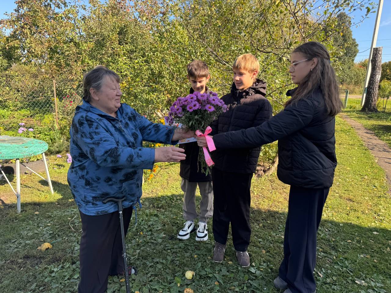 1 октыбря в школе прошел классный час "С мудростью на висках". Ребята говорили о людях, чьи годы достойны уважения, их опыте, заслугах. Они приводили примеры из истории, личного опыта, современного времени. В.И. Шмакова провела мастер- класс по изготовлению подарка пожилому человеку. Группа ребят побывала в гостях у ветерана педагогического труда Кулешовой В.Н., преподнесла ей подарок и искренне пожелала ей здоровья, счастья и приятной осени.