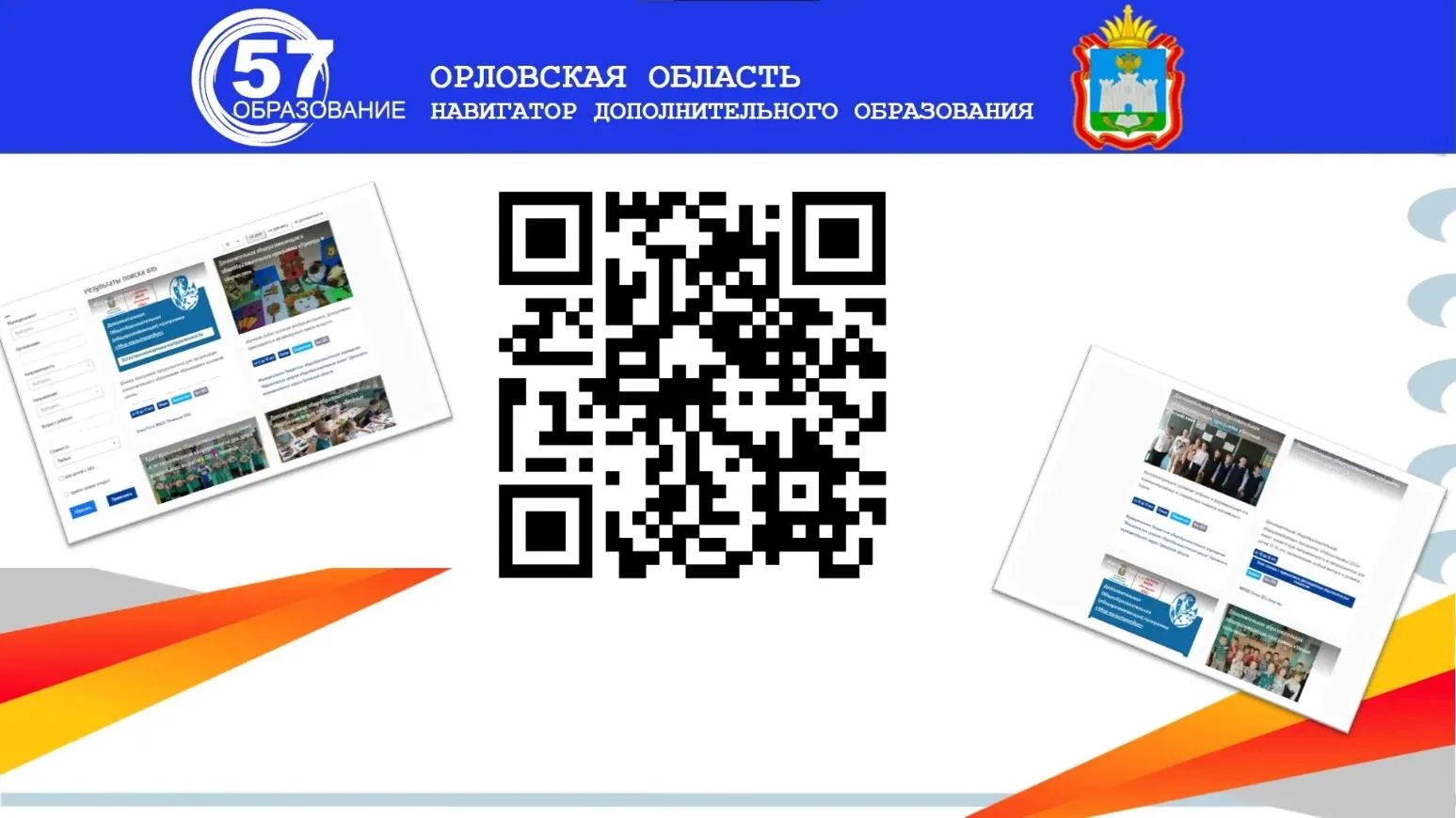 Важная информация! Навигатор дополнительного образования, расположенный ранее по адресу https://р57.навигатор.дети/ (Орловская область), в настоящее время не функционирует. Запись на кружки и мероприятия осуществляется по ссылке https://dop.obr57.ru/