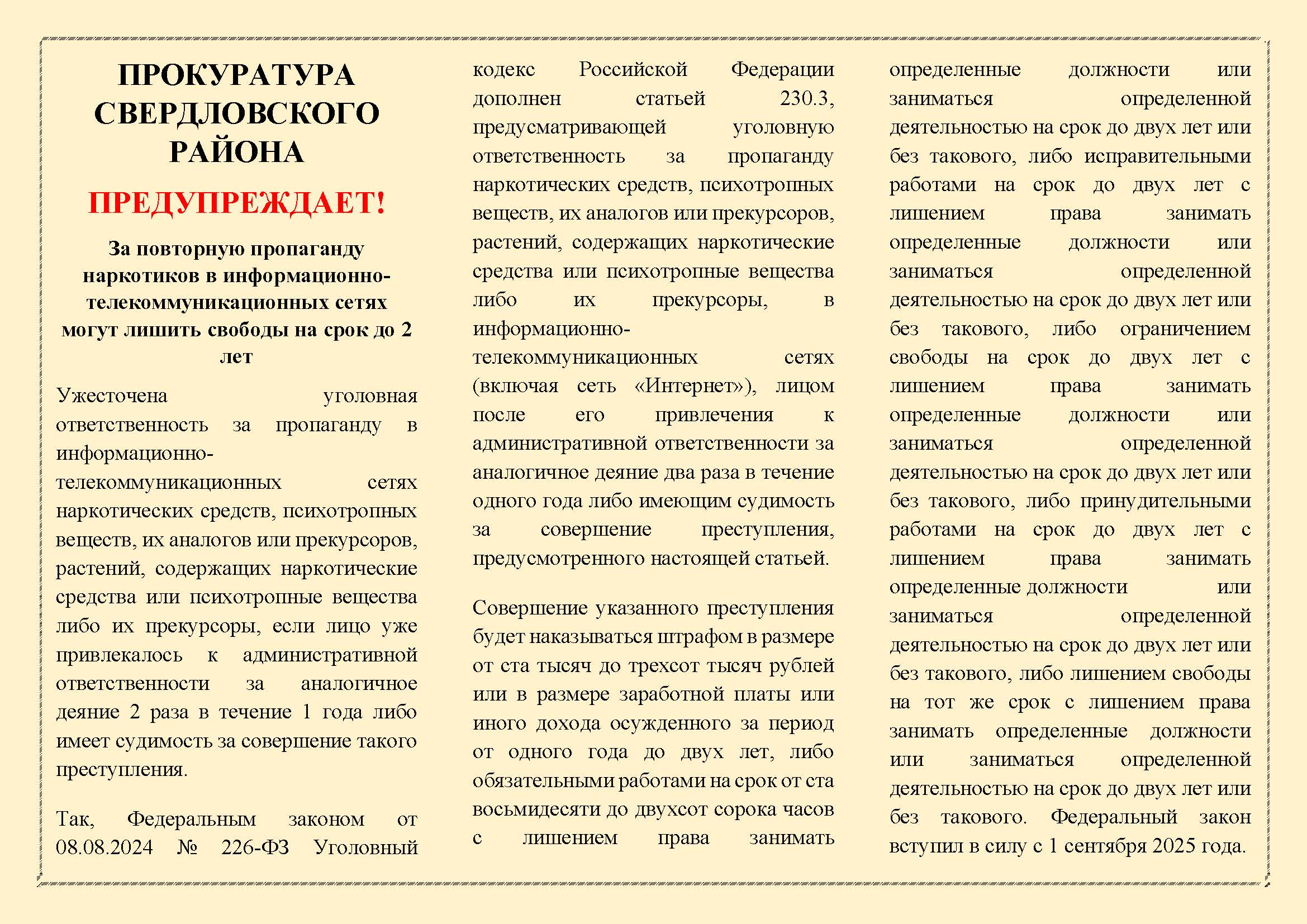 Прокуратура Свердловского района информирует